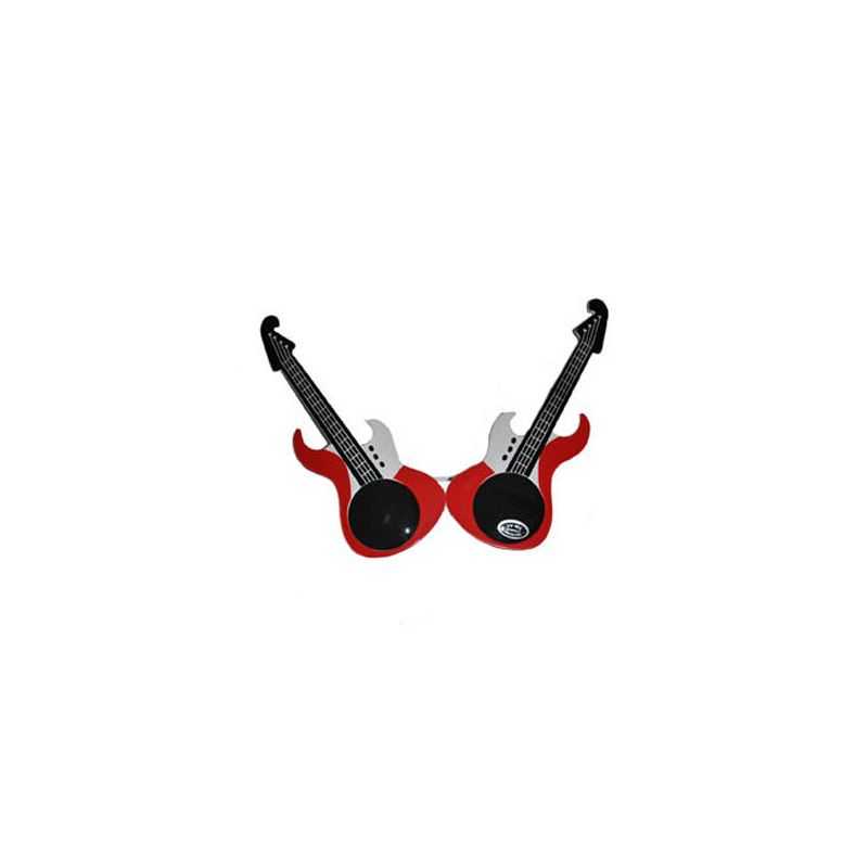 Lunettes fantaisie en forme de guitare à offrir à vos invités pour se déguiser à l'occasion d'une soirée à thème Rock, rock and roll ou encore pour s'éclater tous ensemble à Fête de la musique, à l'occasion d'un festival avec un dress code identique : lunettes en forme de guitare électrique. Paire de lunettes disponible en 2 coloris : bleu ou rouge.