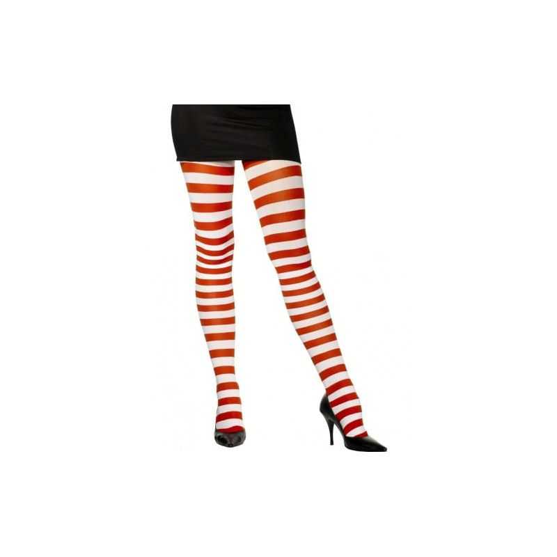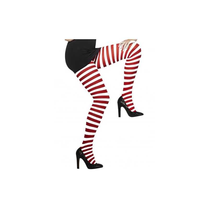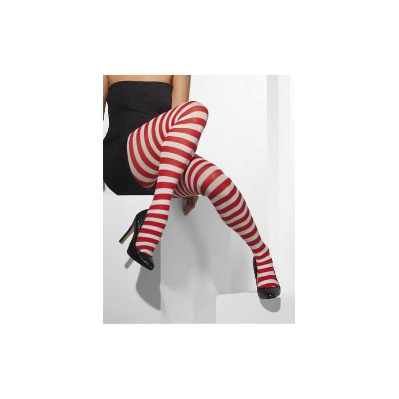 Collants rayés blanc et rouge pour se déguiser en Mère Noel