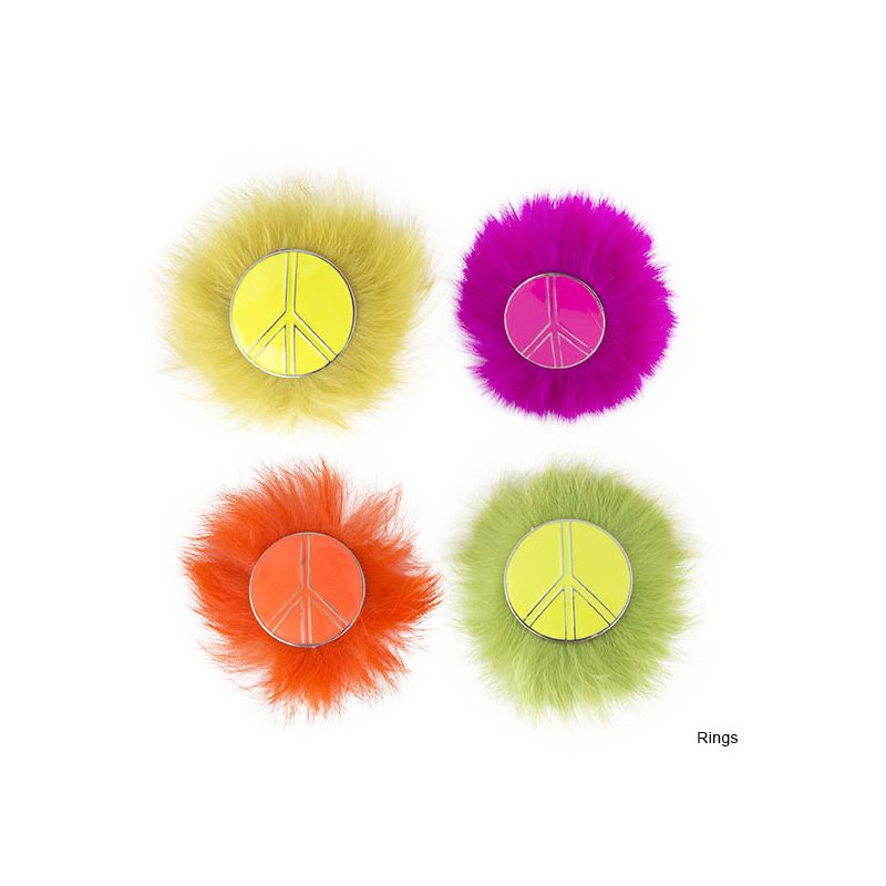 Optez pour cette bague fluo avec de la fourrure autour du sigle Peace and Love !