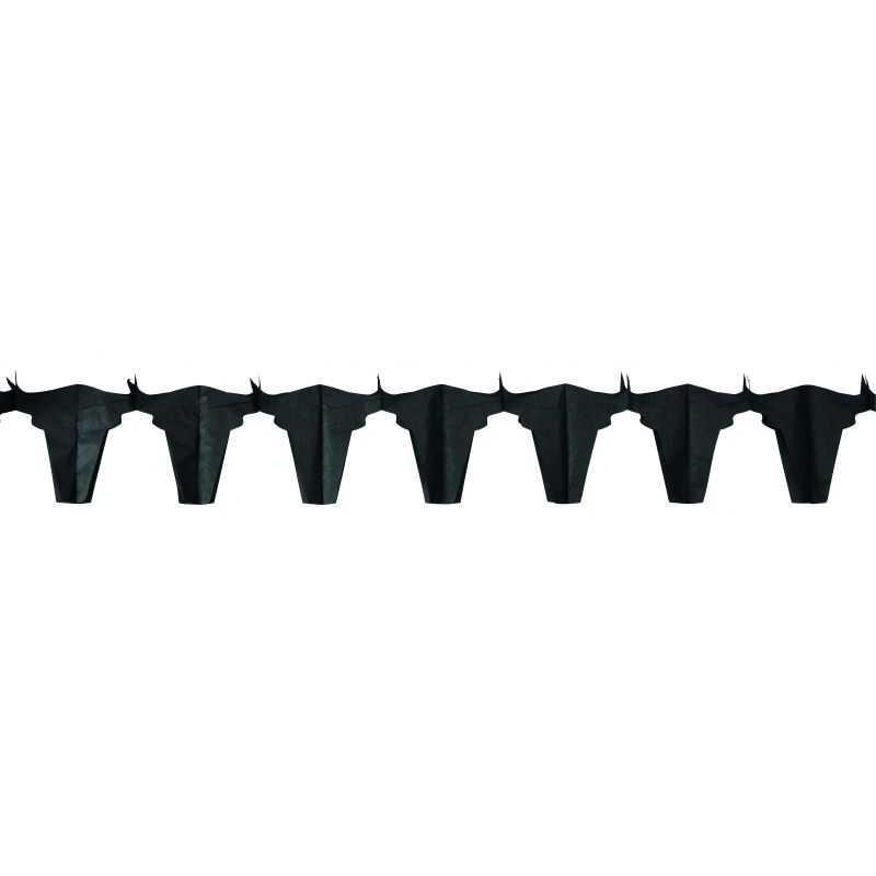 Matière : papier ignifugé (= ininflammable) - longueur : 4,5m - Guirlande papier avec des fanions en forme de tête de Taureau. Accessoire de décoration de salle sympa et original pour une soirée à thème Pays Basque, Camargue, Espagne ou une soirée à Thème Western dans le grand Far West. Guirlande papier taureaux disponible en 2 coloris : rouge ou noire.