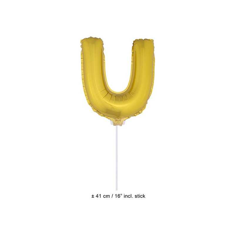 Matière : mylar - hauteur 41cm (tige incluse) - Ballon de couleur Doré avec tige, en forme de Lettre de l'alphabet, pour réaliser une décoration de fête d'anniversaire enfant, adulte ou autres en associant plusieurs lettres. Gonflable à l'air libre (pratique car vous pouvez le planter à l'aide de la tige) et idéalement à l'hélium pour un rendu impeccable. Les ballons de baudruche ne conviennent pas aux enfants de moins de 8 ans.