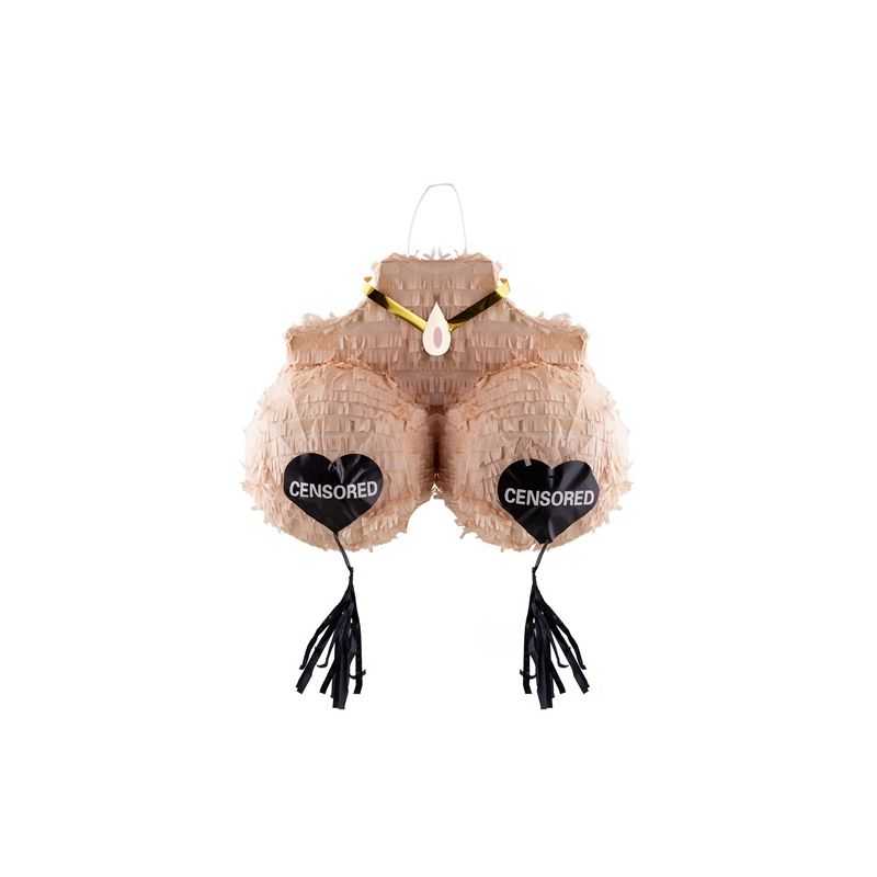 Largeur : 41cm et hauteur : 32cm - pour adultes évidemment ! Pinata en forme de poitrine, en forme de paire de seins,avec crochet de suspension - vendue vide. Une idée d'animation pour retomber en enfance,.... enfin pas tout à fait :-) à l'occasion d'un enterrement de vie de jeune fille, evjf et/ou enterrement vie de garçon, evg comme on dit. Un trou d'un diamètre de 5cm permet de glisser toutes vos surprises grivoises.