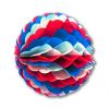 Boule papier festonnée en papier ignifugé (= ininflammable) aux couleurs bleu blanc rouge du drapeau français pour réaliser une décoration de salle tricolore pour une soirée à thème France, pour le 14 juillet avec un bel article en papier. Disponible en diamètre : 25cm.