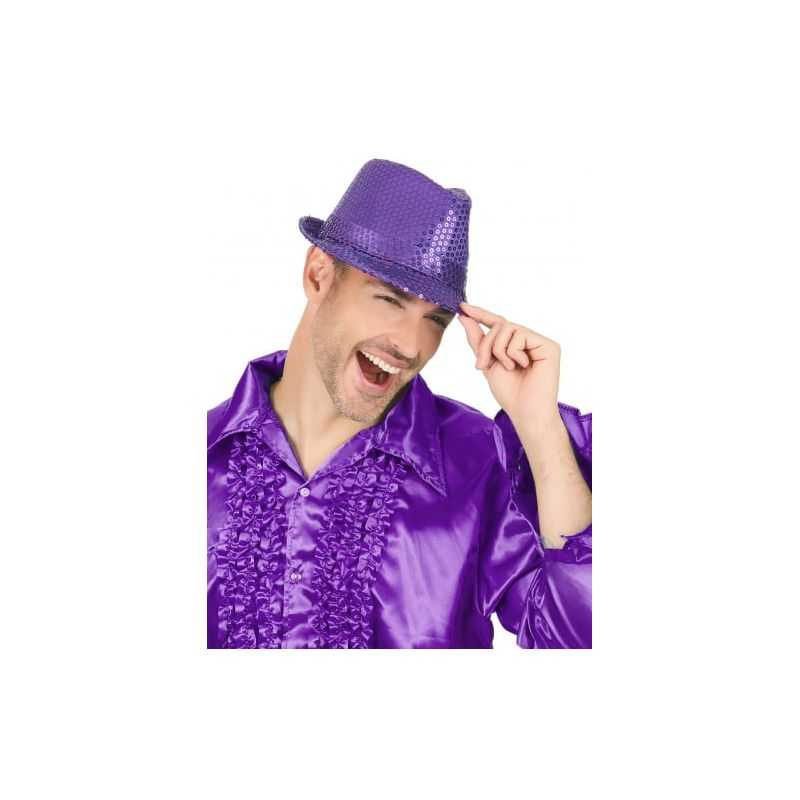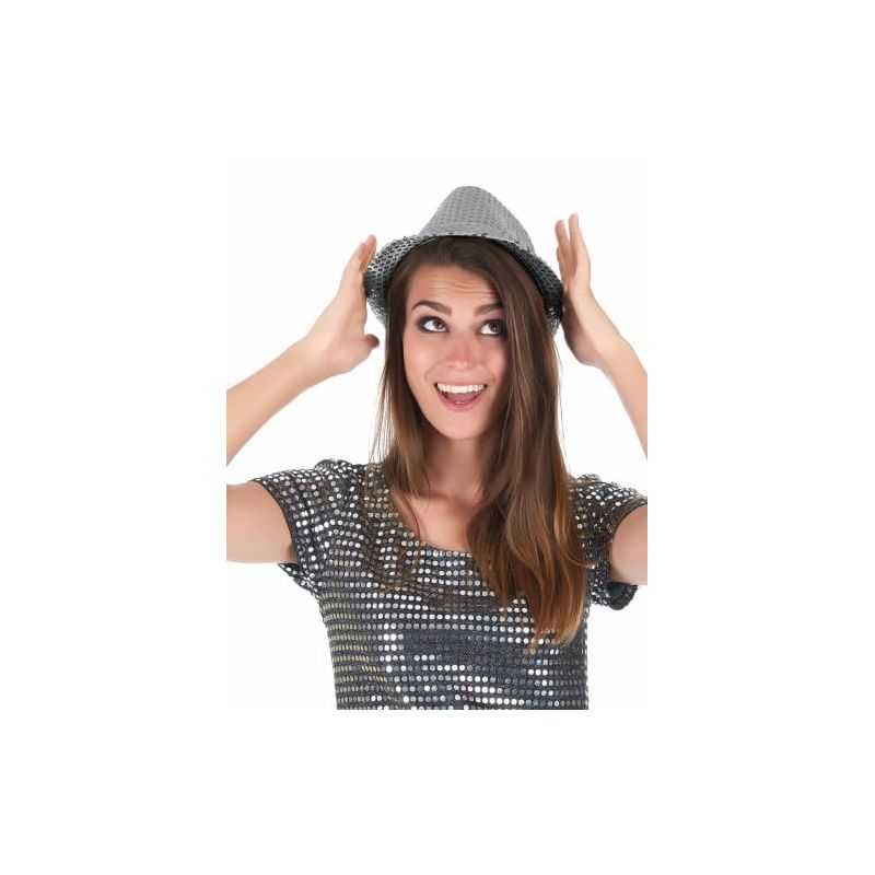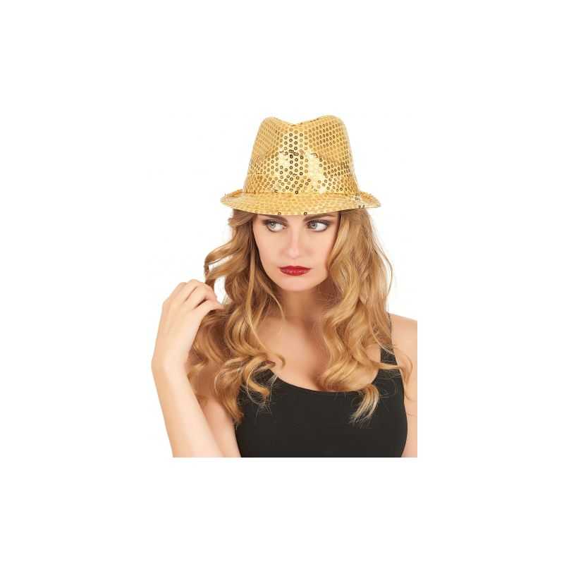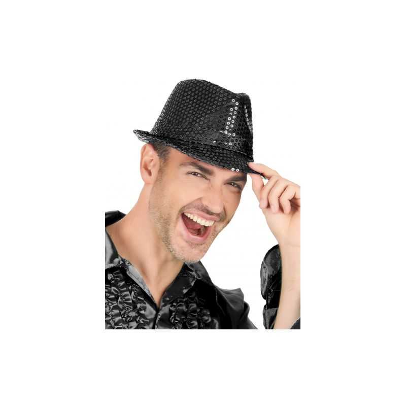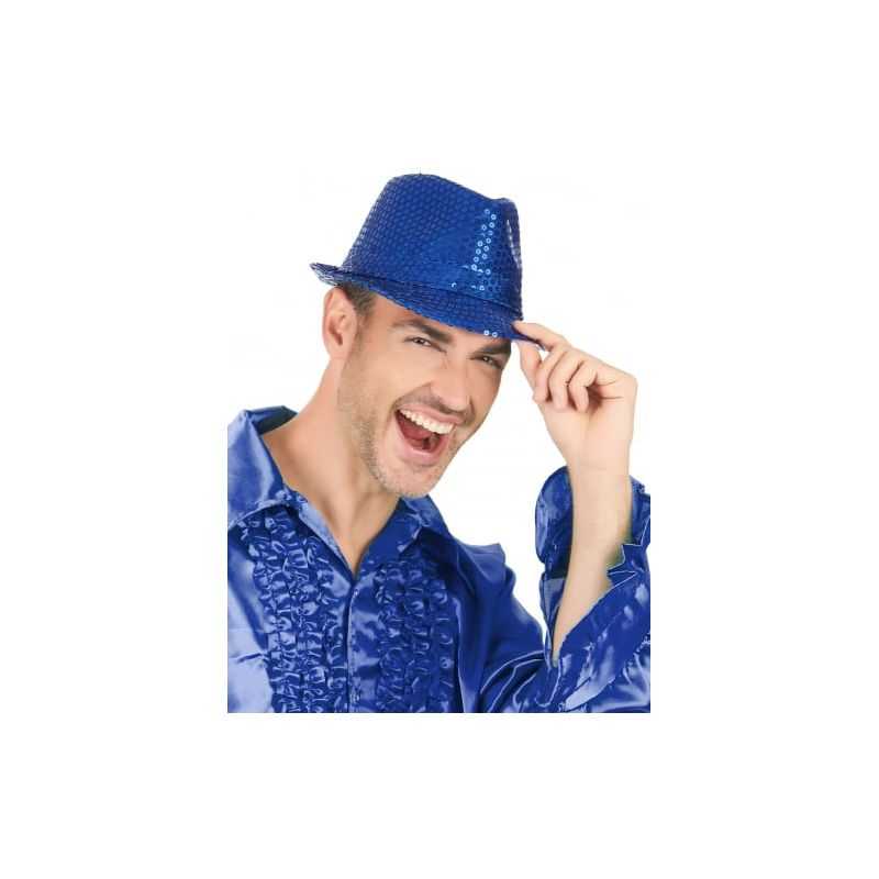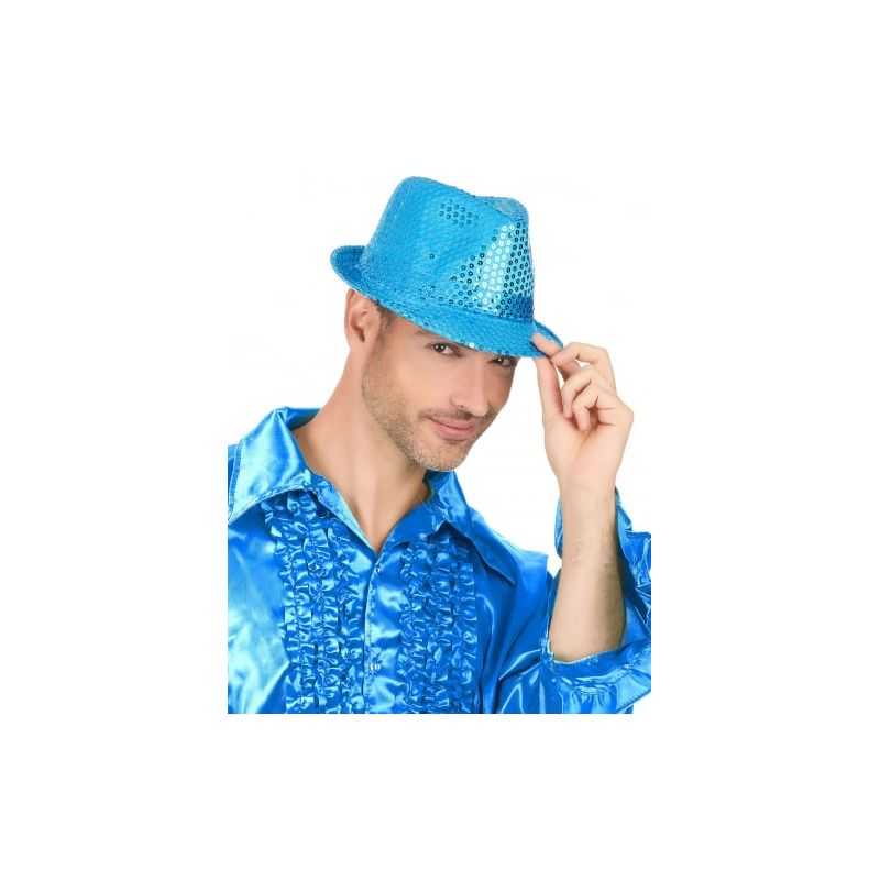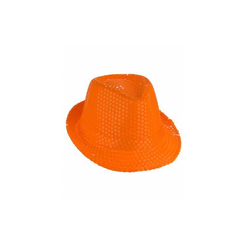 Chapeau de soirée à sequins pour adulte, de couleur fluo, de type borsalino, idéal pour une soirée dansante à thème accessoire fluo. Disponible en différents coloris : rose, rouge, bleu turquoise, bleu foncé, argent, or, orange, violet, noir.
