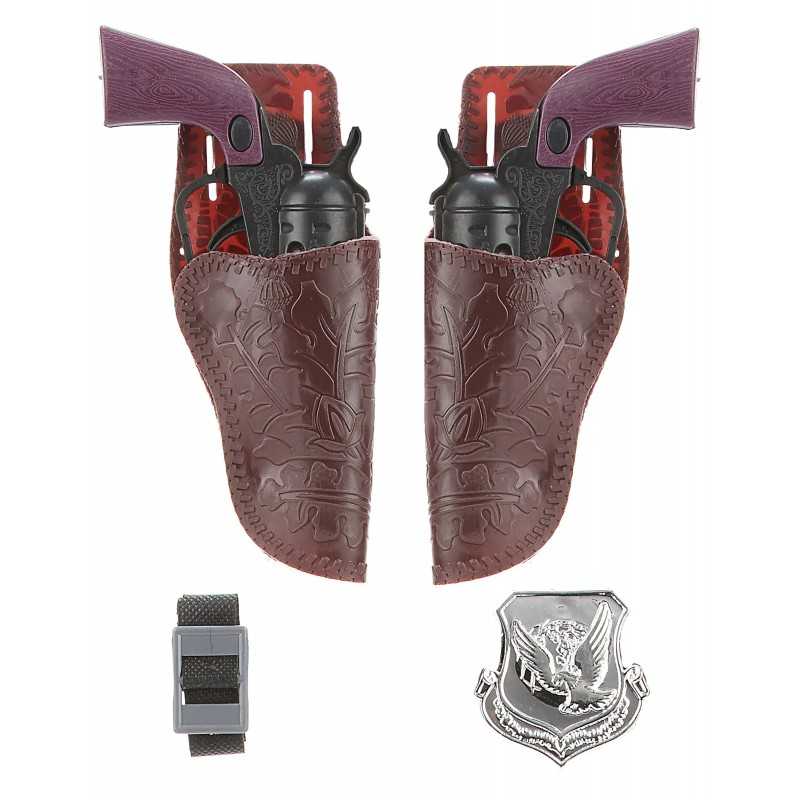 Panoplie déguisement de cowboy enfant comprend : 2 pistolets, 2 fourreaux, 1 insigne et 1 ceinture (mesure 79cm)