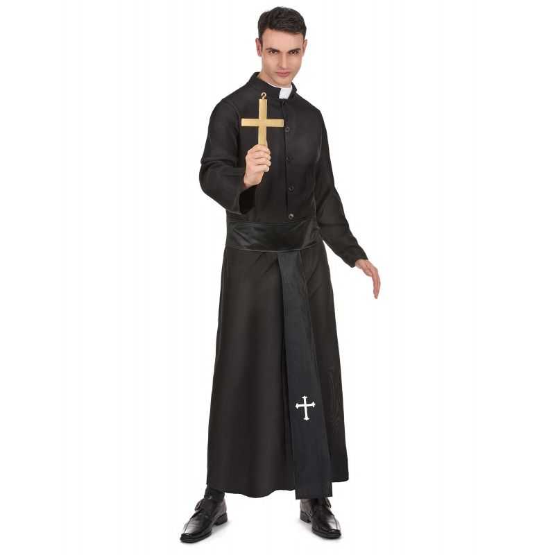Disponible en différentes tailles homme. Costume de prêtre idéal pour se déguiser en curé de campagne du village.