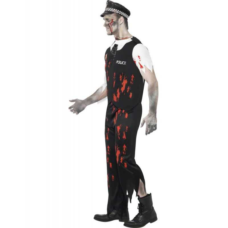 Déguisement Policier Zombie, modèle adulte comprend : haut et pantalon maculés de tâches de faux sang, cravate et casquette de policier (attention ne comprend ni matraque ni chaussures). Disponible en plusieurs tailles homme adulte. Costume soirée parfait pour accueillir ses invités à l'occasion de votre soirée déguisée Halloween ou de votre soirée à thème Horreur ou soirée Zombies.