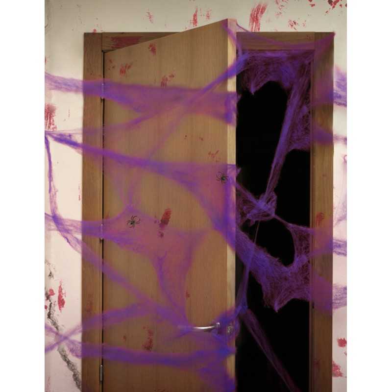 Poids toile d'araignée de couleur : 20 grammes - Une fois posée, dimensions = environ 50cm de longueur sur 50cm de largeur. Fausse petite toile d'araignée comprenant petites araignées noires à fixer pour réaliser une décoration de salle dans des petits coins de la maison ou manoir hanté, déco angoissante et réaliste pour Halloween ou pour une soirée déguisée à thème films d'horreur. Modèle disponible en différents coloris : rouge, vert, orange, noir ou violet.