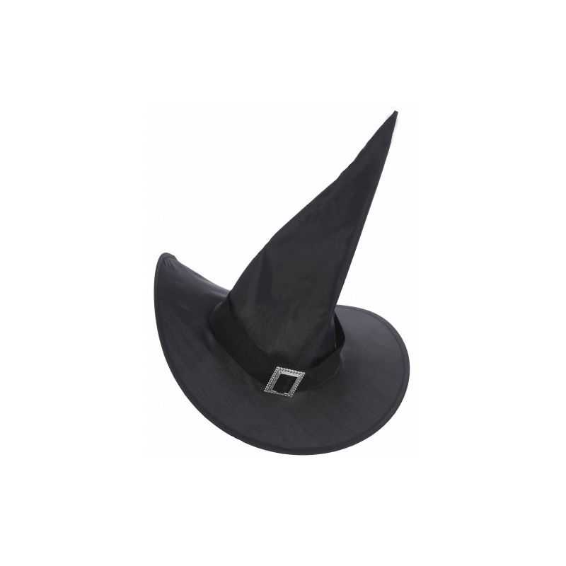 Chapeau de sorcière taille adulte, noir, en nylon avec une boucle.