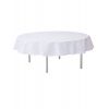 Matière : intissé opaque - diamètre : 2,40 mètres. Modèle de nappe ronde et blanche d'excellente qualité pour une ambiance chic de votre décoration de table pour vos tables de mariage et vin d'honneur, tables de banquet, kermesse, fête de village, diners et soirées à thème, soirée blanche et bien sûr anniversaire enfant et anniversaire adulte.