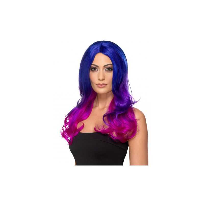 Perruque bicolore aux cheveux longs modèle femme pour se déguiser en Licorne. Pas de corne de Licorne pour ce modèle mais un style qui rappelle une jolie crinière de Licorne.
