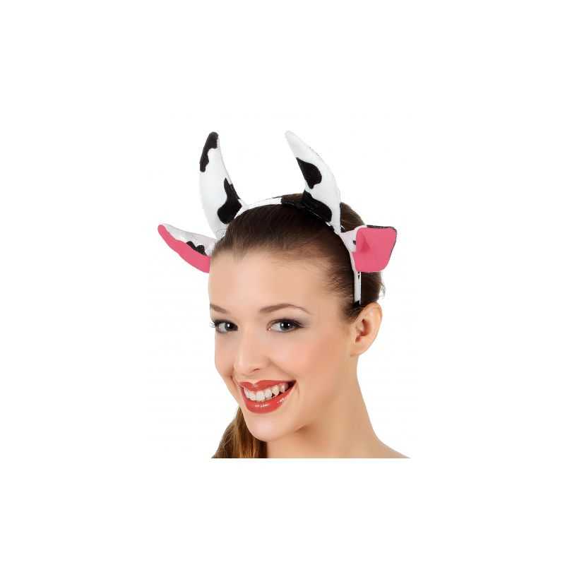 Serre tête avec des oreilles de vache pour se déguiser en belle vache normande de couleur blanche et noire.