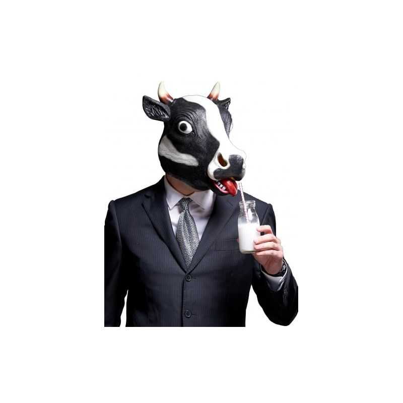 Matière : latex - Masque adulte de Vache en latex pour se déguiser en vache normande. Accessoire de déguisement chic pour une soirée à thème Animaux de la Ferme, Normandie.