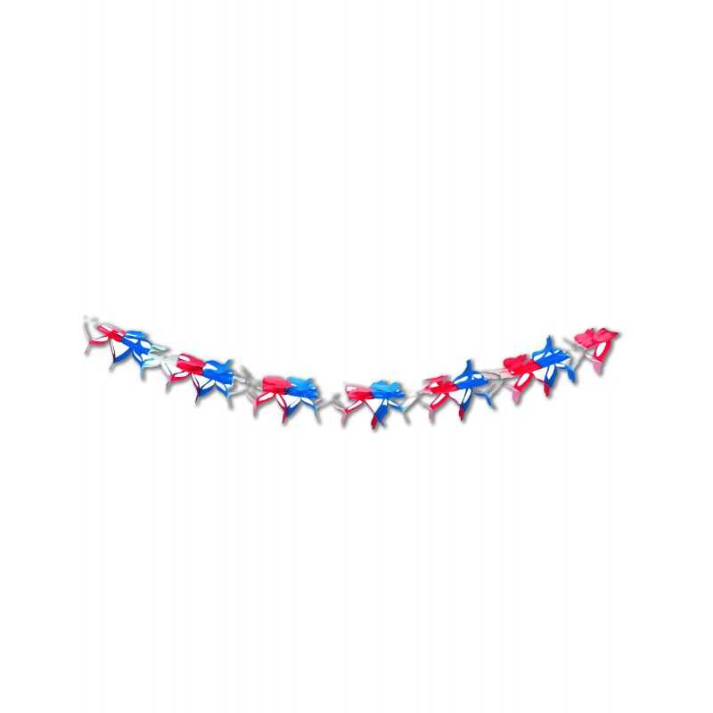 Longueur : 4,5 mètres - matière : papier ignifugé (= ininflammable). Guirlande papier de type zinnia aux couleurs bleu blanc rouge de la France pour réaliser une jolie déco de fête tricolore, française ou un anniversaire à thème France. Indispensable pour fêter le 14 juillet.